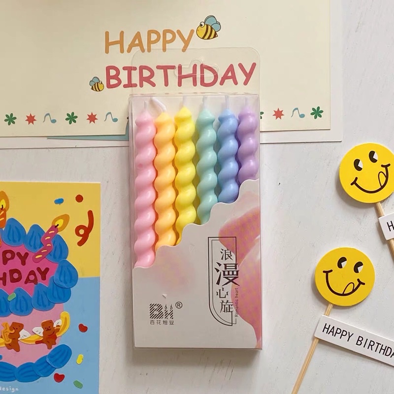 Nến xoắn màu pastel dùng để trang trí bánh sinh nhật cứng cáp hộp 5 câyTone màu tươi tắn , thân to cứng cáp
