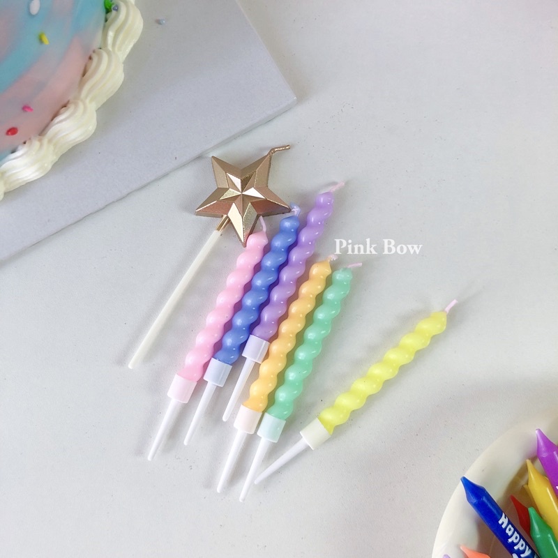 Nến sinh nhật xoắn nhiều màu phong cách Hàn Quốc giúp chiếc bánh sinh nhật thêm xinh đẹp.Chất liệu: Sáp không mùi