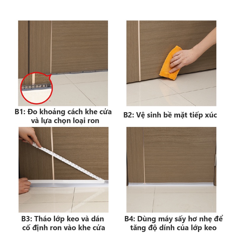- Đo khoảng cách cần dán, cắt bỏ phần ron thừa.