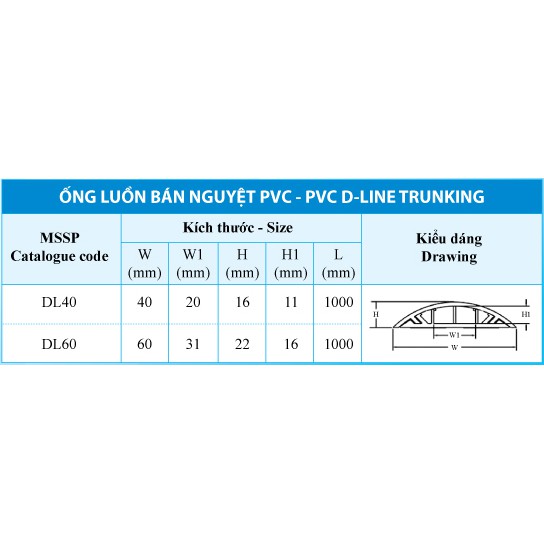 Ưu điểm nổi bật: nẹp bán nguyệt có kết cấu chịu lực, không bị biến dạng và hư hỏng khi bị dẫm đạp, hoặc xe đẩy nhỏ đi qua. Chuyên được dùng để thi công bảo vệ hệ thống dây dẫn điện, dây tín hiệu trong văn phòng, siêu thị điện máy/gia dụng và các cửa hàng điện thoại.