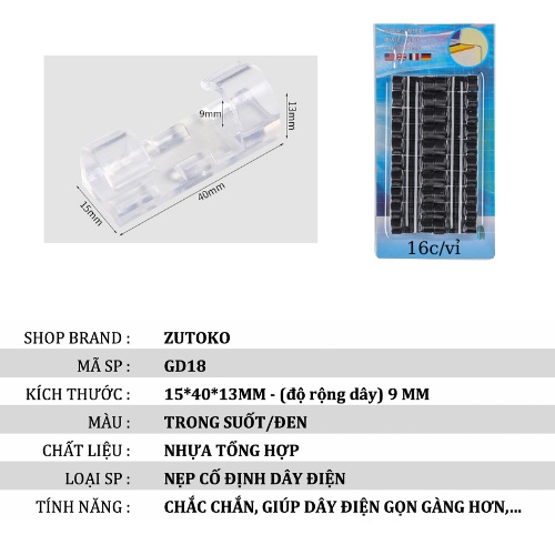 • Mỗi bộ sản phẩm gồm: 16 kẹp dây điện