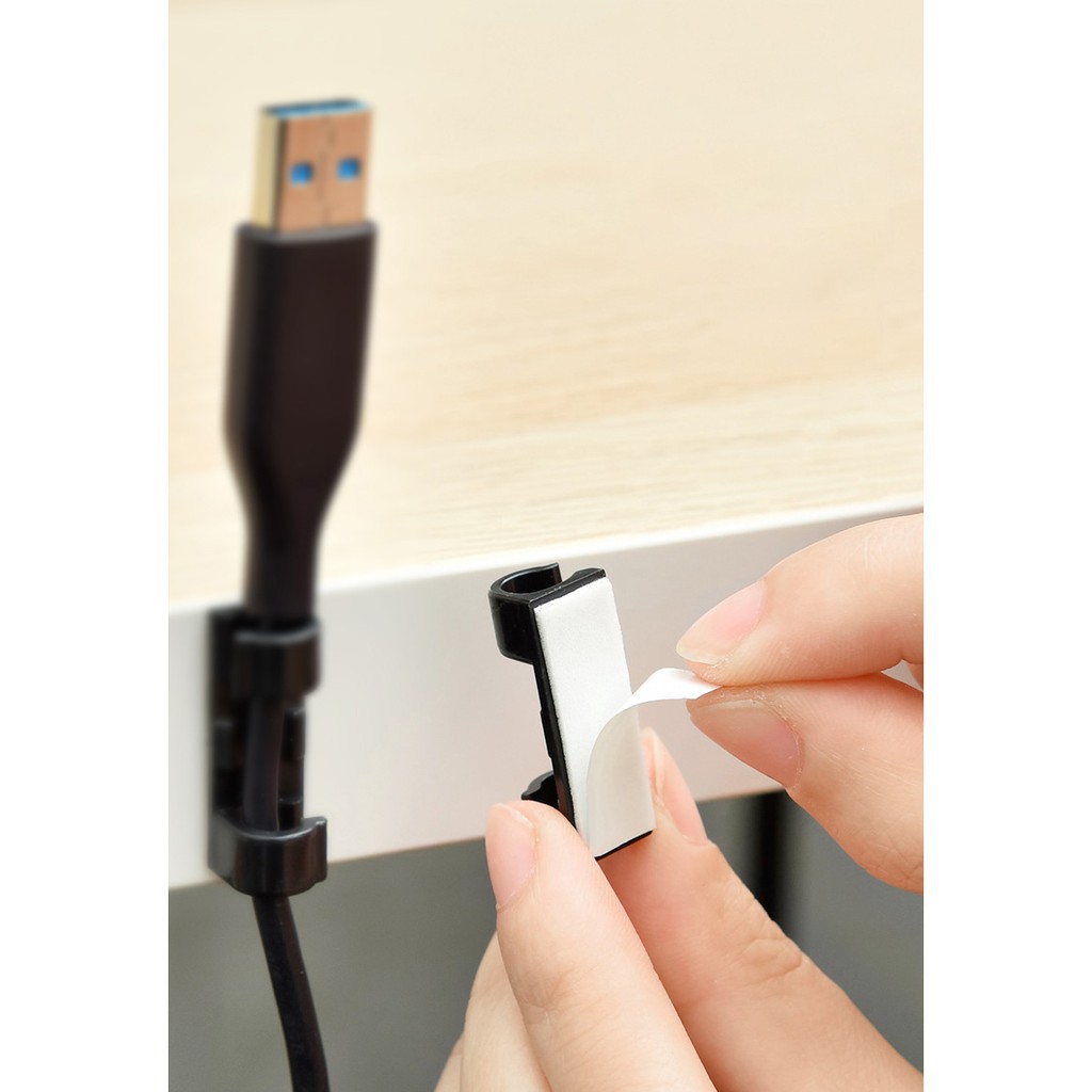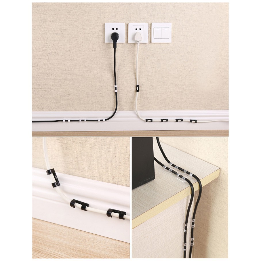 Bộ sản phẩm gồm 20 nẹp cố định và luồn dây điện chuyên để dây sạc, chuột, bàn phím máy tính