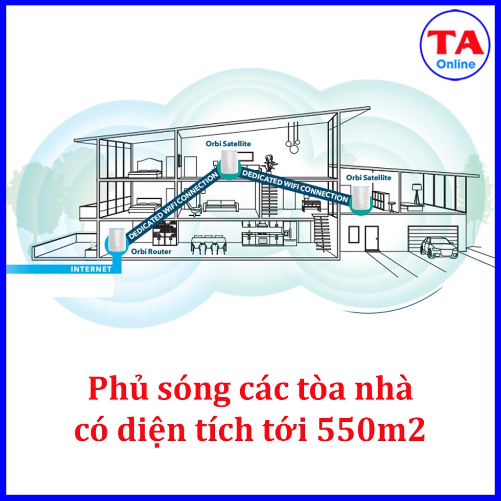- Hệ thống RBK53 bao gồm 3 bộ phát WiFi giúp phủ sóng lên đến 550m2 với tốc độ cao.