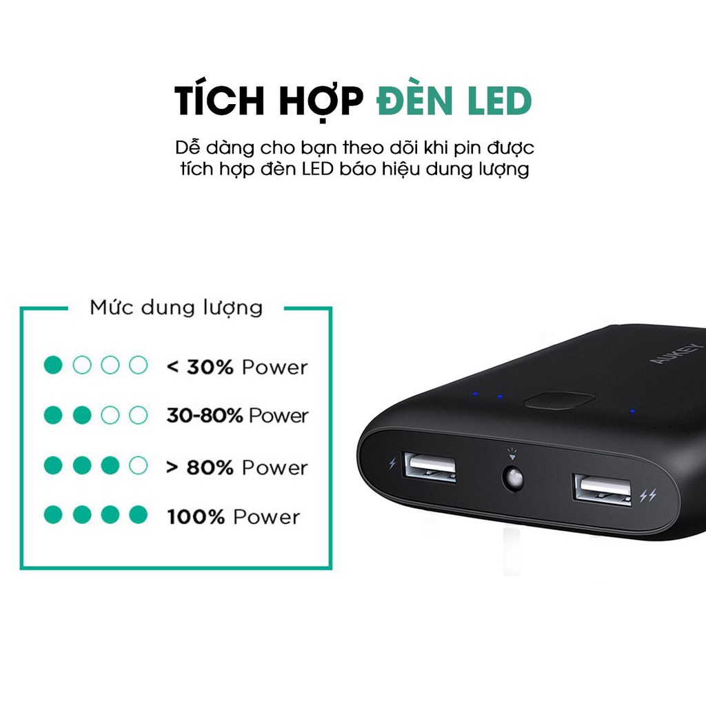 Pin Sạc Dự Phòng 10000mAh Aukey PB-N42 Công Nghệ AiPower Độc Quyền Kèm Đèn LED