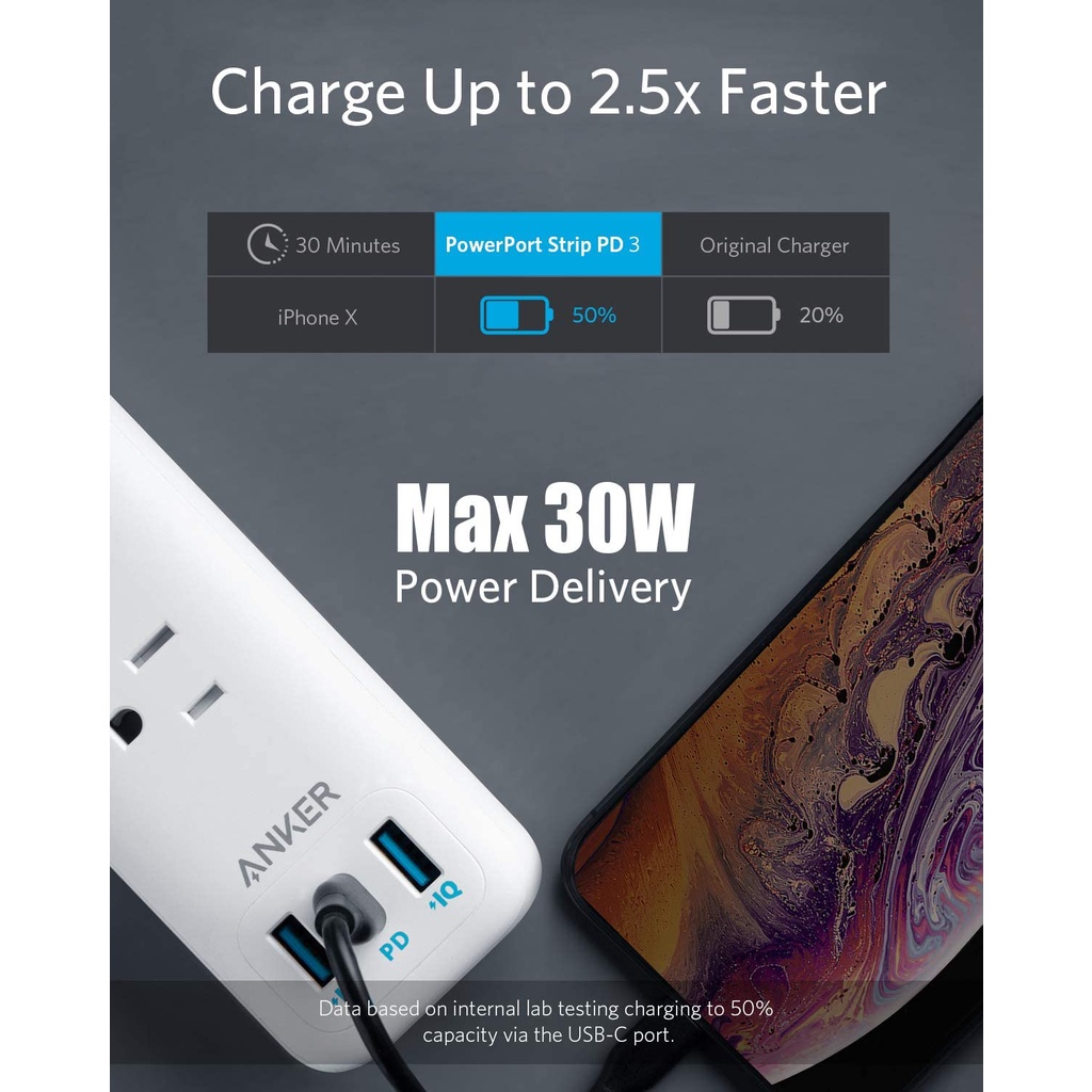 [NEW 100%] Ổ cắm điện Anker PowerStrip PD3 - A9133 Gồm 1Cổng Type C 30W 2 Cổng USB IQ + 3 Cổng AC 220V HÀNG AMAZON