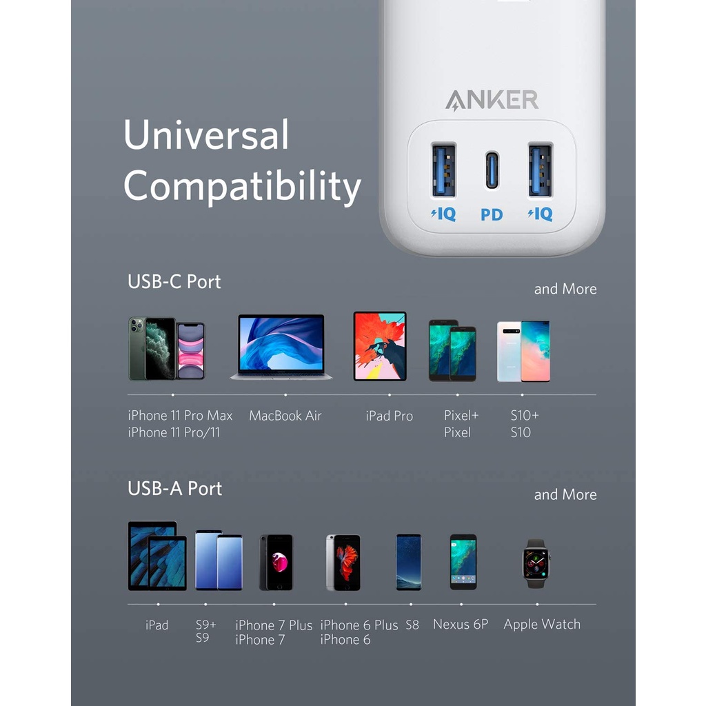 - Sạc và cấp nguồn cho 6 thiết bị cùng lúc với 1 cổng USB-C Power Delivery, 2 cổng USB PowerIQ và 3 ổ cắm AC