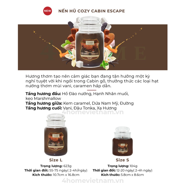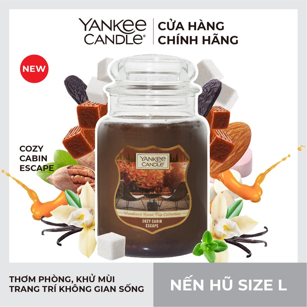 Nhà cửa & Đời sống > Trang trí nhà cửa > Nến & đồ đựng nến || [Mã LIFEMALL991 giảm 10% đơn 99K] New Arrival - Nến hũ Yankee Candle size L - Cozy Cabin Escape (623g)Còn hàng