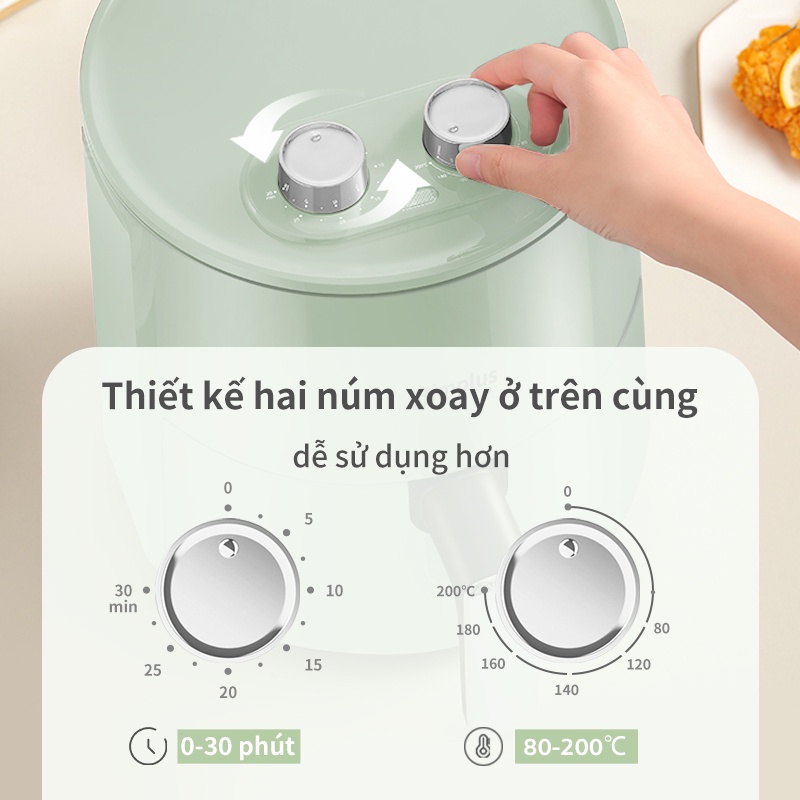 Thiết kế hai núm xoay ở trên cùng, kiểm soát thời gian và nhiệt độ: Thao tác dễ dàng, tiết kiệm thời gian hơn