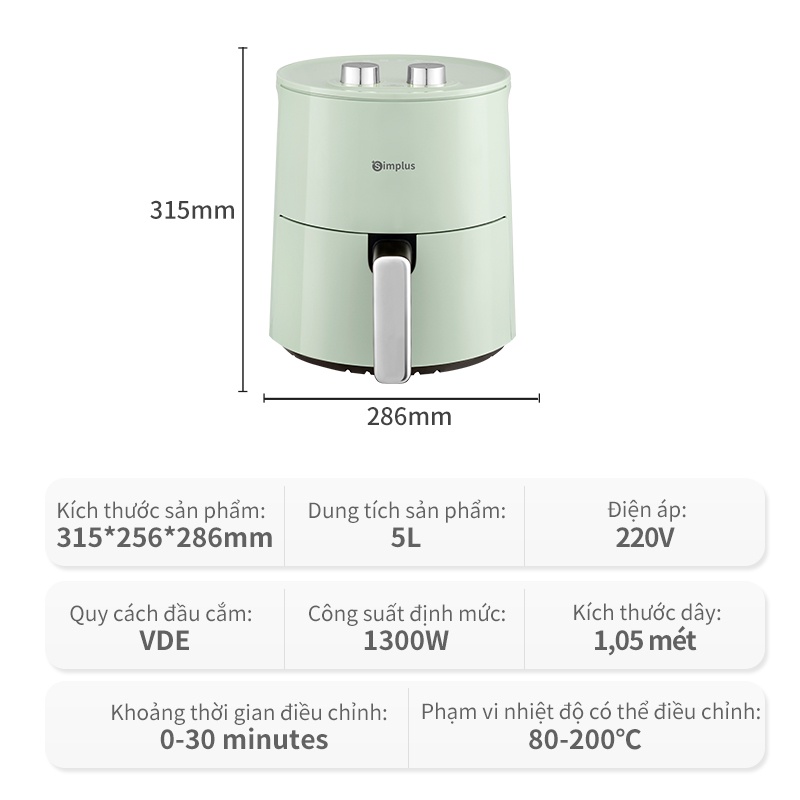 Thương hiệu: Simplus | Xem thêm các sản phẩm Nồi chiên của SimplusMô tả ngắn