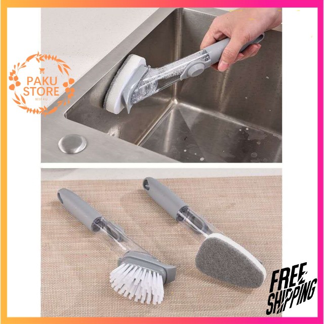 Nhà cửa & Đời sống > Dụng cụ chăm sóc nhà cửa > Miếng bọt biển, miếng chà vệ sinh || [ NEW ] Bàn Chải Cọ Rửa Bát Chén Có Kèm Bình Rửa Đa Năng 2 Trong 1Còn hàng