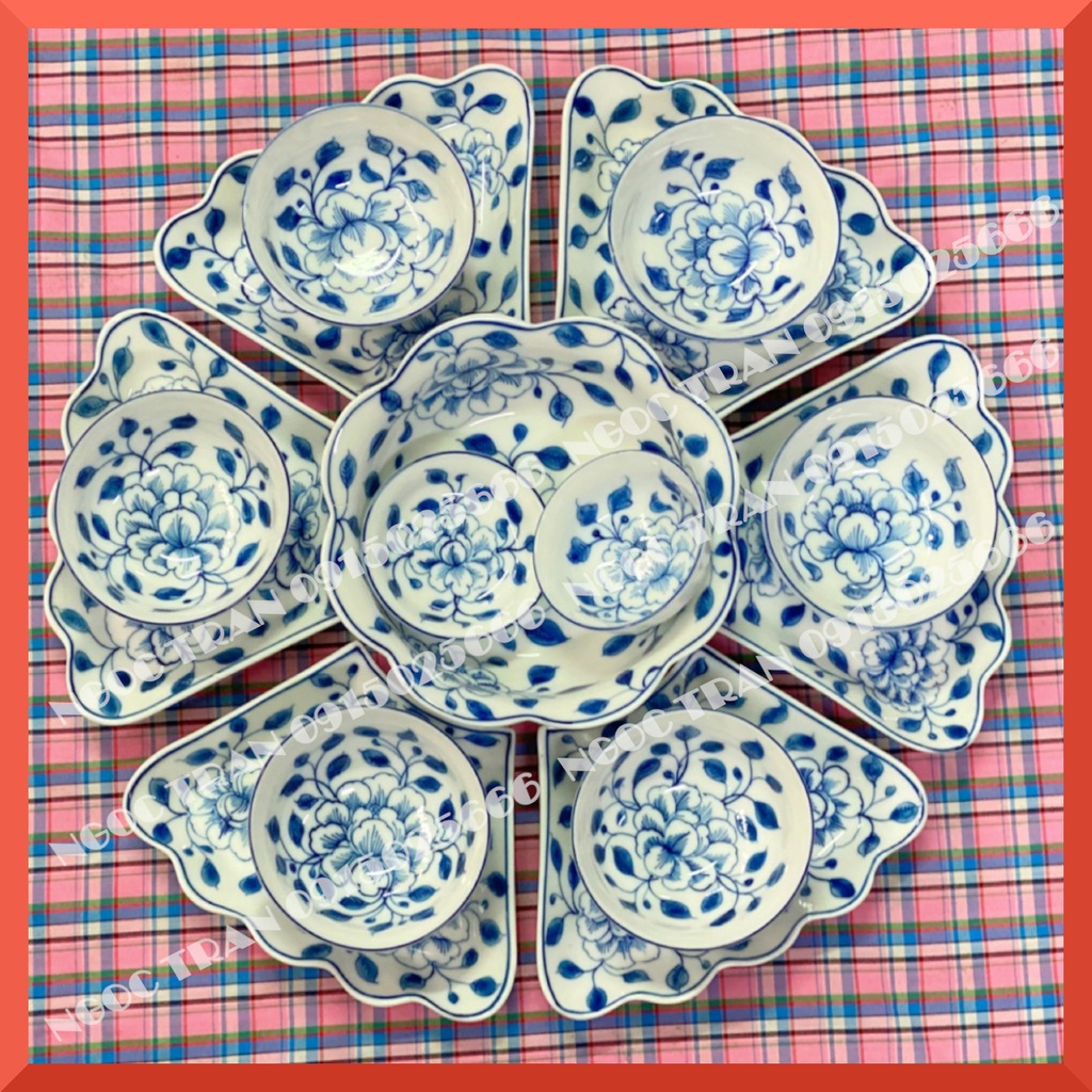 Set gồm: 6 đĩa,6 bát cơm, 1 bát mắm, 1 đĩa muối, 1 bát canh