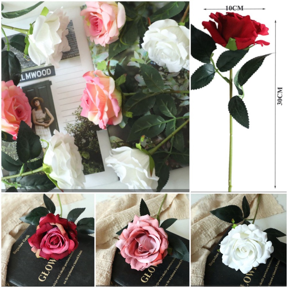 Giới thiệu (NEW-BÔNG NỞ TO-dài 30cm) HOA HỒNG VẢI phụ kiện trang trí chụp ảnh. hoa hồng giả decor cắm lọ, background sân khấu