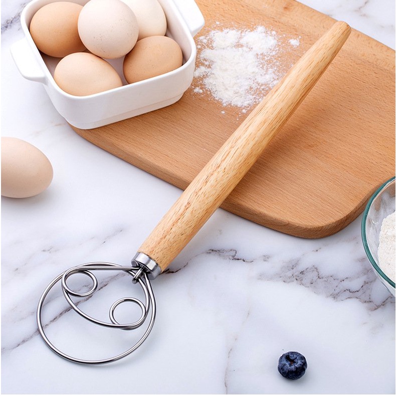 Nhà cửa & Đời sống > Dụng cụ nhà bếp > Cây vét bột & đồ gắp thức ăn || [New] Cây trộn bột đánh bột làm bánh cầm tay cán gỗ KT 33cmCòn hàng