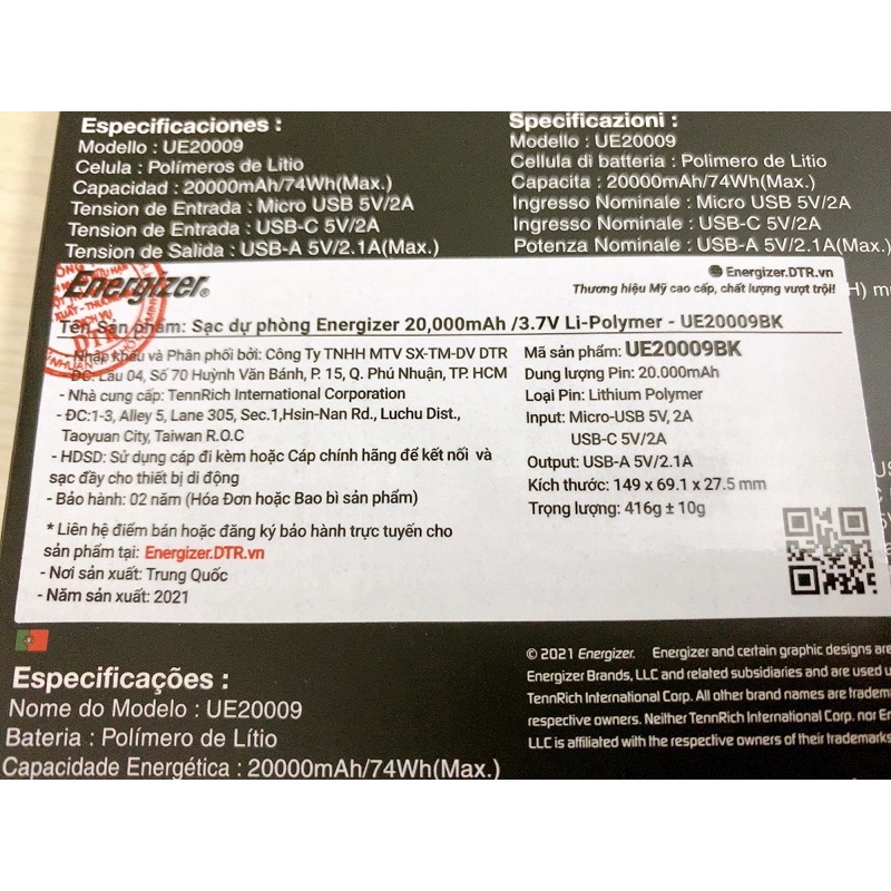 Thương hiệu: Energizer | Xem thêm các sản phẩm Pin sạc dự phòng di động của EnergizerMô tả ngắn