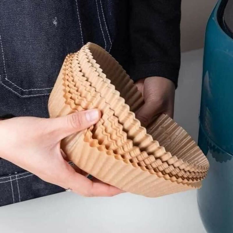 Giới thiệu #New# Giấy nến dạng khuôn cao thành lót nồi chiên không dầu - khay đế làm bánh bông lan, bánh ga tô loại to (hàng loại 1