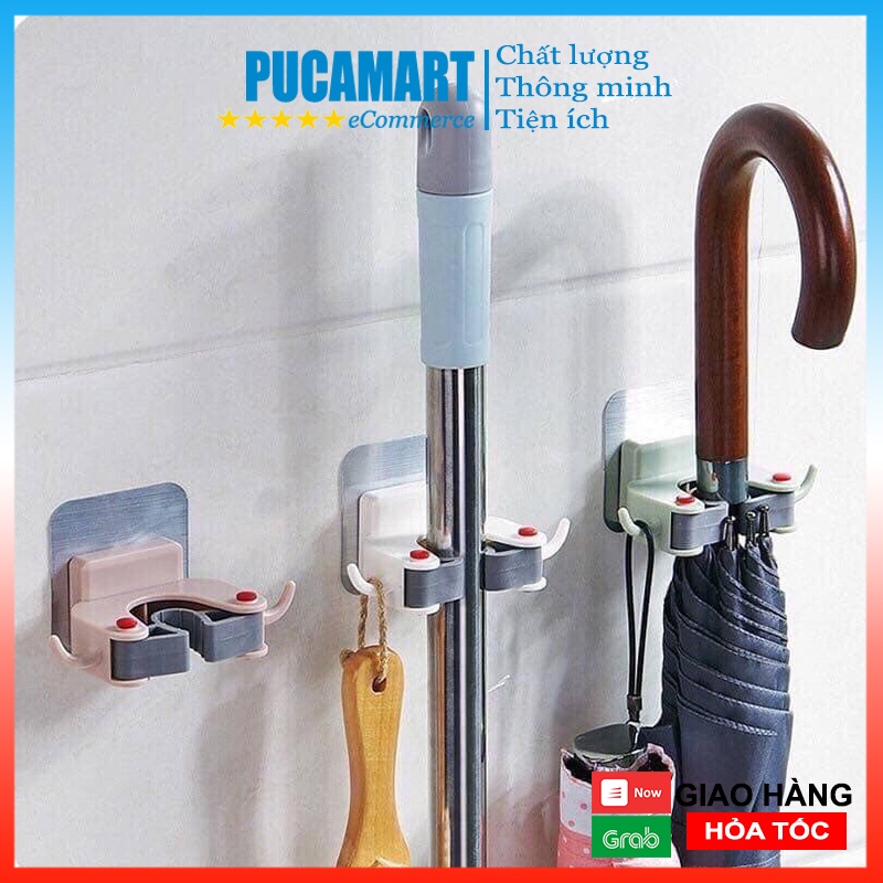 Móc Kẹp Cây Lâu Nhà PUCA Có Móc 2 Bên, Móc Treo Chổi, Treo Dụng Cụ Nhà Bếp Thông Minh