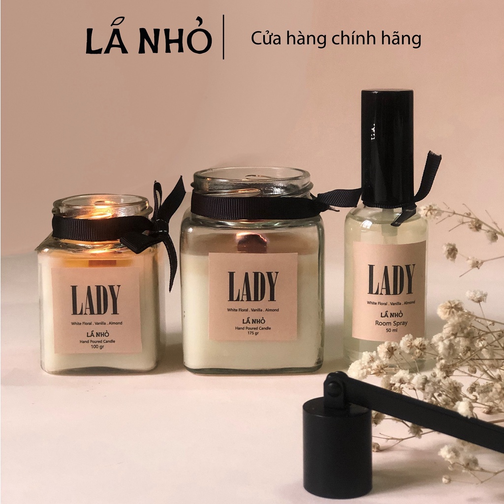 [NEW] - Nến thơm LÁ NHỎ - Lady ( White Floral - Vanilla - Almond) - Tinh tế - Quyến rũ - Ngọt ngào