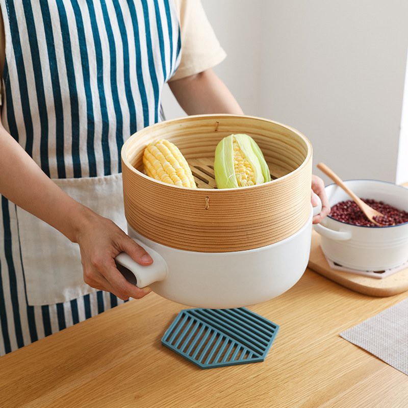 Giới thiệu [New] Tấm lót nồi/ lót ly hình lục giác họa tiết kẻ sọc - chịu nhiệt, chống trượt