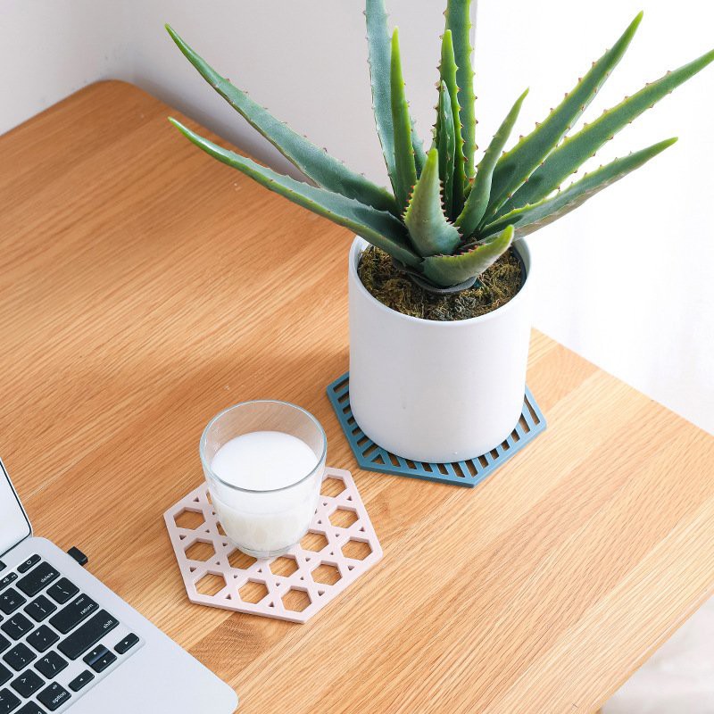[New] Tấm lót nồi/ lót ly hình lục giác họa tiết kẻ sọc - chịu nhiệt, chống trượt