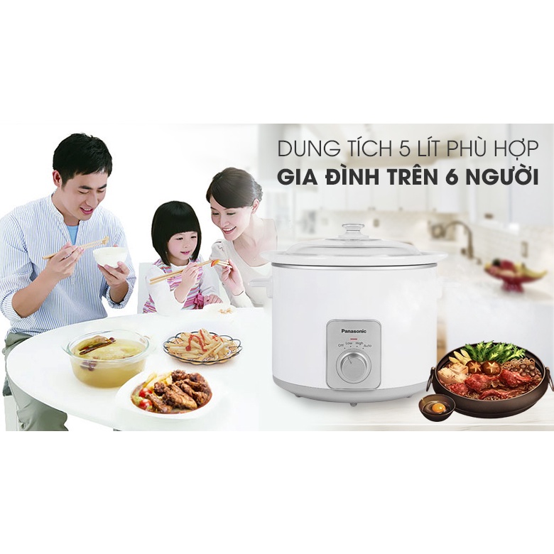 - Nồi nấu chậm Panasonic NF-N50ASR dung tích 5 lít, nấu với công suất 155W - 260W, tiết kiệm điện rất tốt