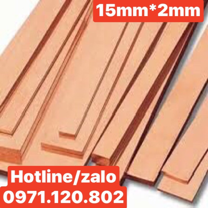 Thanh đồng đỏ bản 15mm*2mm dài 1m