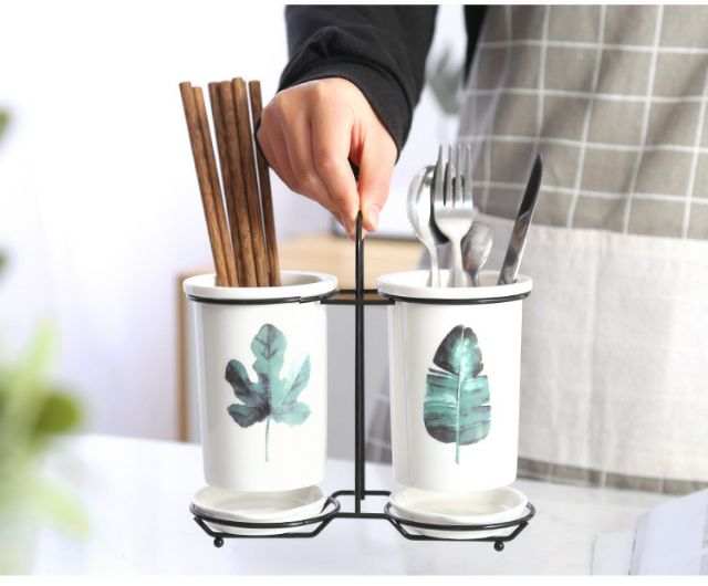 Điểm nổi bật :Bộ đựng muỗng đũa bằng sứ sang trọng bao gồm 2 ống sứ cao cấp giúp bạn đựng muỗng đũa, vật dụng gọn gàng, sạch sẽ.