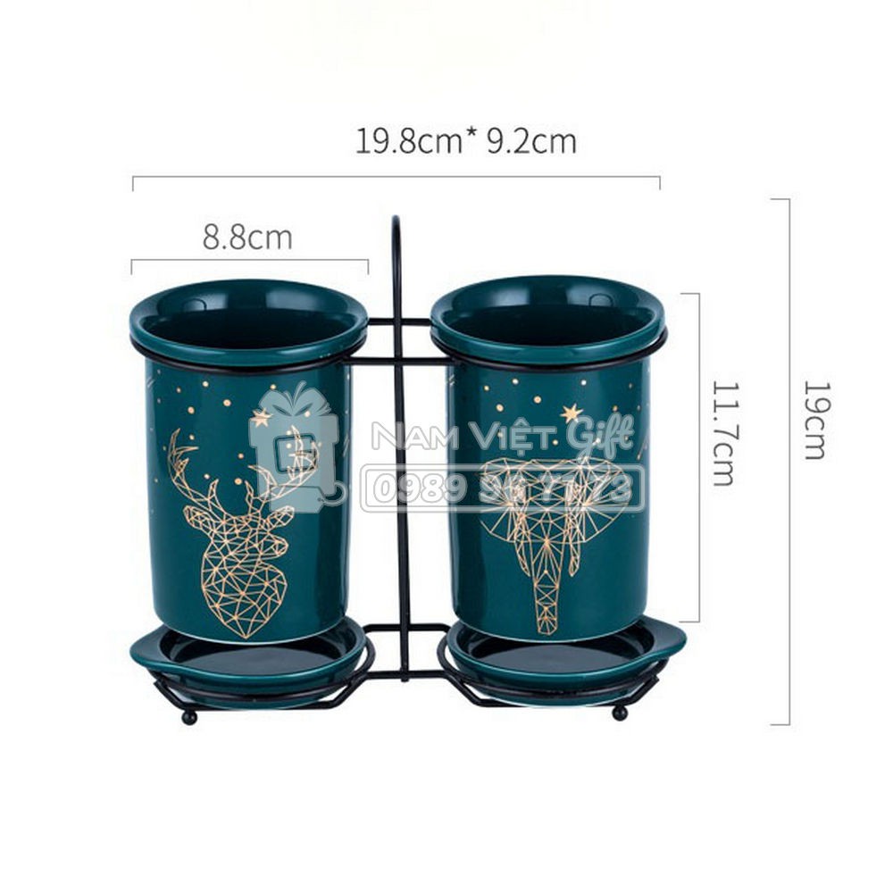 Bộ Ống Đũa Sứ Khung Sắt Hoa Văn Trang Nhã - Nhiều Mẫu