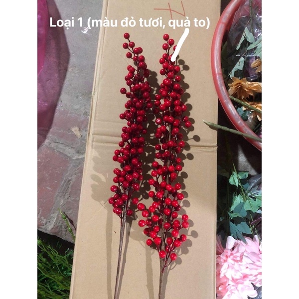 * Thân Cành dài 1m được làm từ thép dẻo dễ uốn cong và tạo kiểu. Quả được làm bằng chất liệu cao su xốp, màu sắc đỏ tươi.