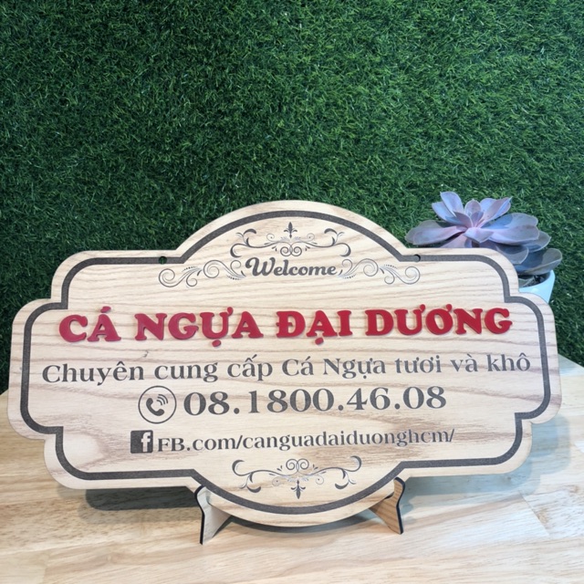 - Bảng hiệu được làm từ chất liệu gỗ tự nhiên