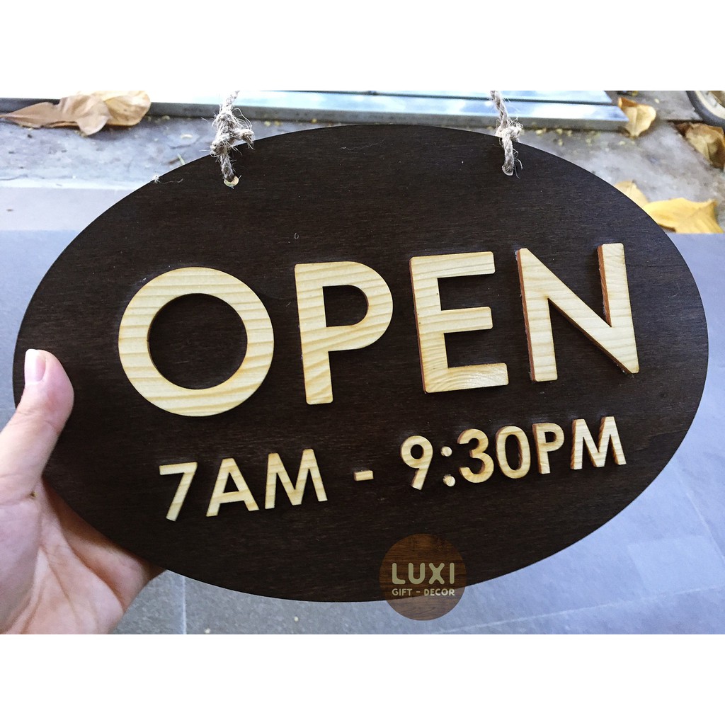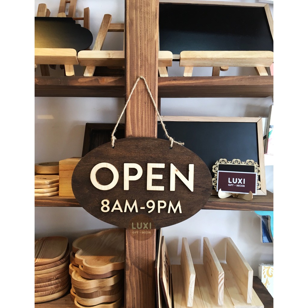 Nhà cửa & Đời sống > Trang trí nhà cửa > Rèm cửa, màn che || Bảng gỗ treo của 2 mặt Open - Closed LUXI decor nhiều khung giờ AM-PMCòn hàng