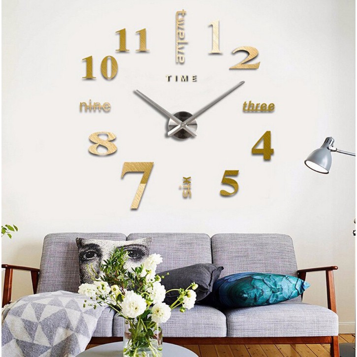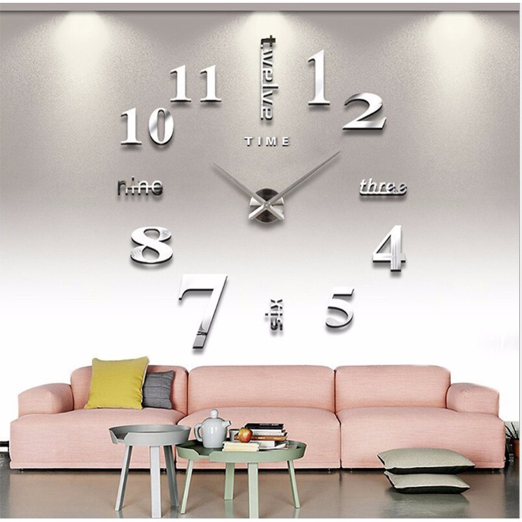 ** Kích thước đồng hồ tự điều chỉnh, đường kính dao động từ 80-120cm** Chất liệu: Khung máy kim loại, chữ số mi ca cao cấp tráng gương lót xốp dày có sẵn keo dán ở 1 mặt, bộ kim bằng thép mạ sơn tĩnh điện cực bền.