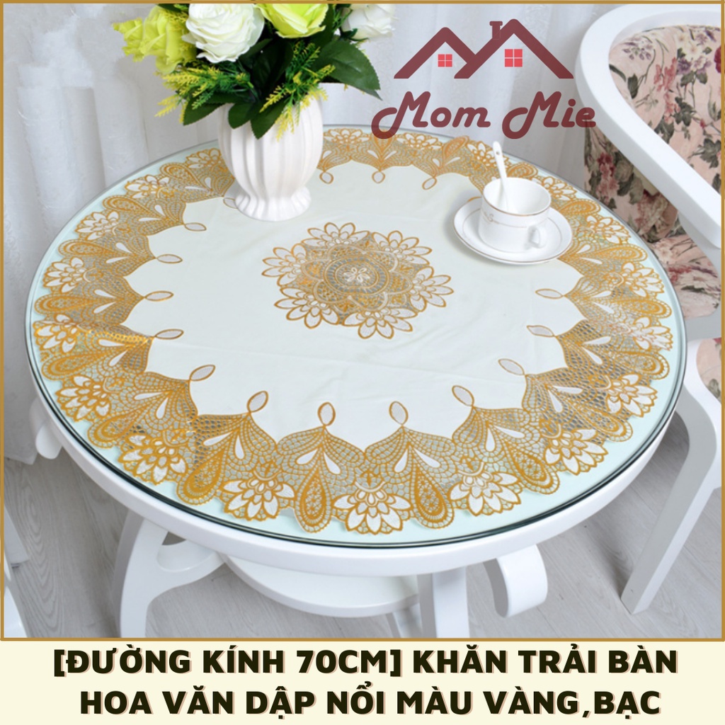 [ĐƯỜNG KÍNH 70CM] KHĂN TRẢI BÀN TRÒN HOA VĂN DẬP NỔI SANG TRỌNG - MÀU VÀNG, BẠCThông tin về sản phẩm dưới đây thuộc sở hữu của shop Mom Mie, mô tả đúng theo chất lượng sản phẩm của shop. Vui lòng không sao chép.