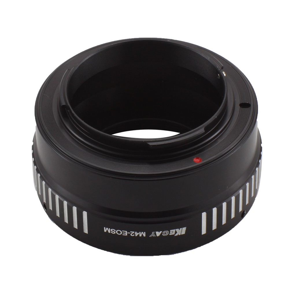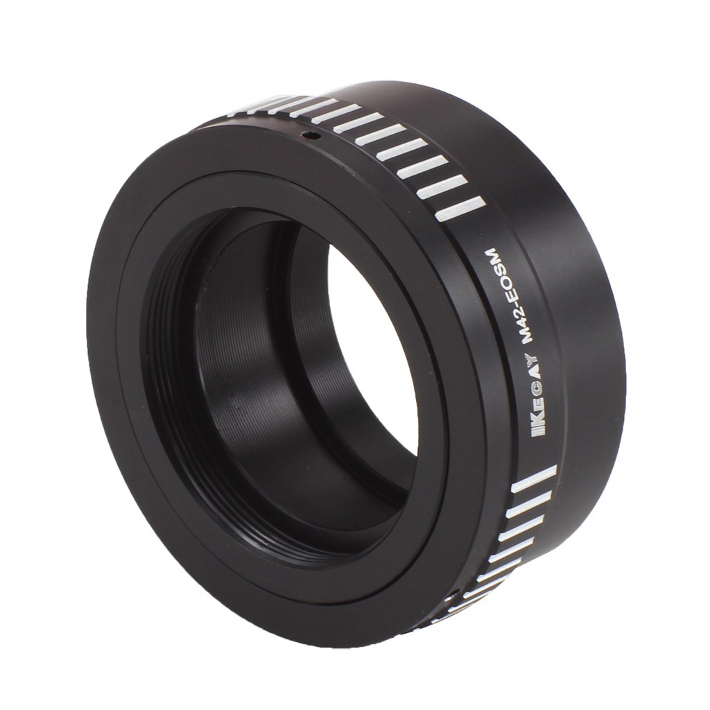 Gắn ống kính có ngàm M42 vào máy ảnh Canon EOSM EOS M bằng bộ chuyển đổi này. Không có yếu tố điện tử trong bộ ngàm chuyển, khẩu độ và lấy nét phải được điều khiển thủ công.
