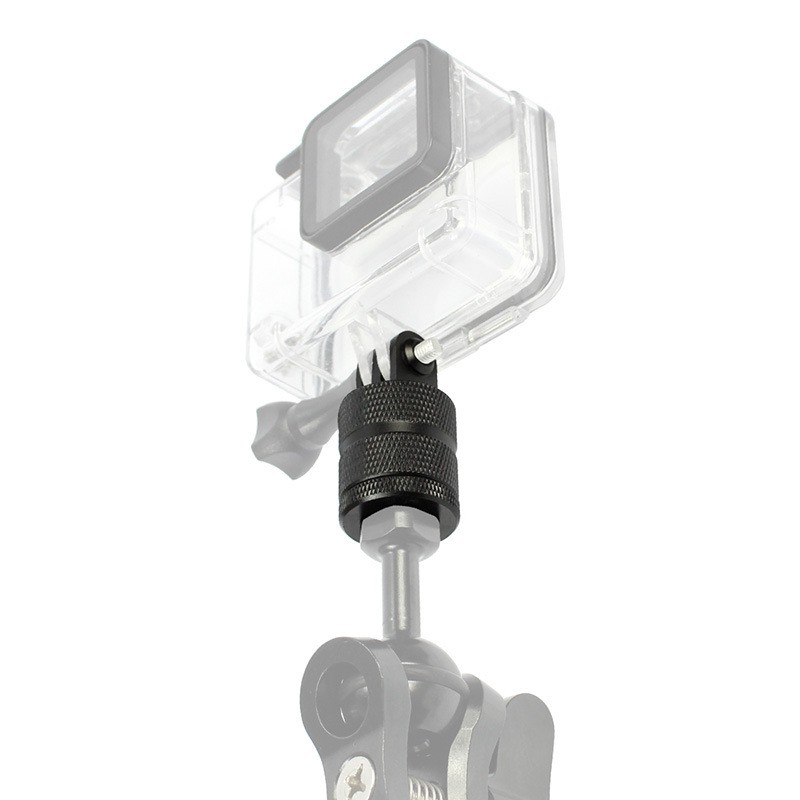 Ngàm kim loại gắn GoPro và các máy Action Cam, ngàm có thể xoay 360 độ, chất liệu hoàn toàn kim loại chắc chắn. Phần đế có sẵn ren 1/4" chuẩn ren máy ảnh có thể gắn lên các gậy tự sướng, tripod lớn nhỏ hoặc ngàm gắn trên xe moto, xe máy và xe đạp.Phù hợp gắn các máy GoPro 9, GoPro 8 / 7 / 6 / 5 / 4 và các máy Action như Xiaomi Yi, DJI Osmo Action, Osmo Pocket ...