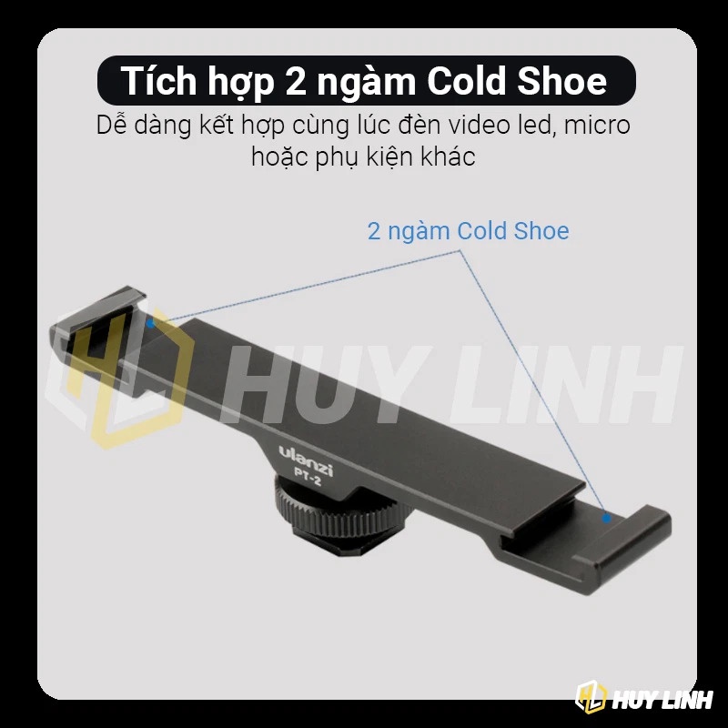 Cameras & Flycam > Phụ kiện máy ảnh > Khác || Ngàm mở rộng Ulanzi PT2 kim loại Aluminum - 2 ngàm Cold Shoe gắn thêm đèn mic và phụ kiệnCòn hàng