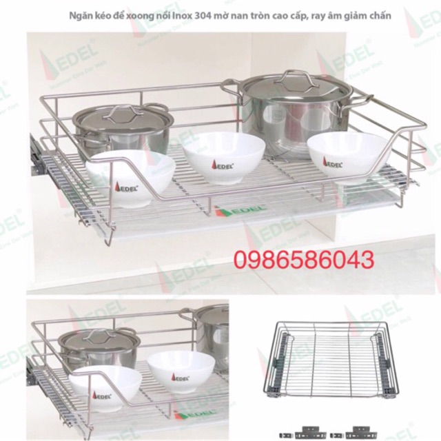 Tư vấn vui lòng liên hệ số ĐT/ZALO. 0986586043Giá để xoong nồi inox 304 nan tròn kèm ray âm giảm chấn gắn liền EDEL SP02
