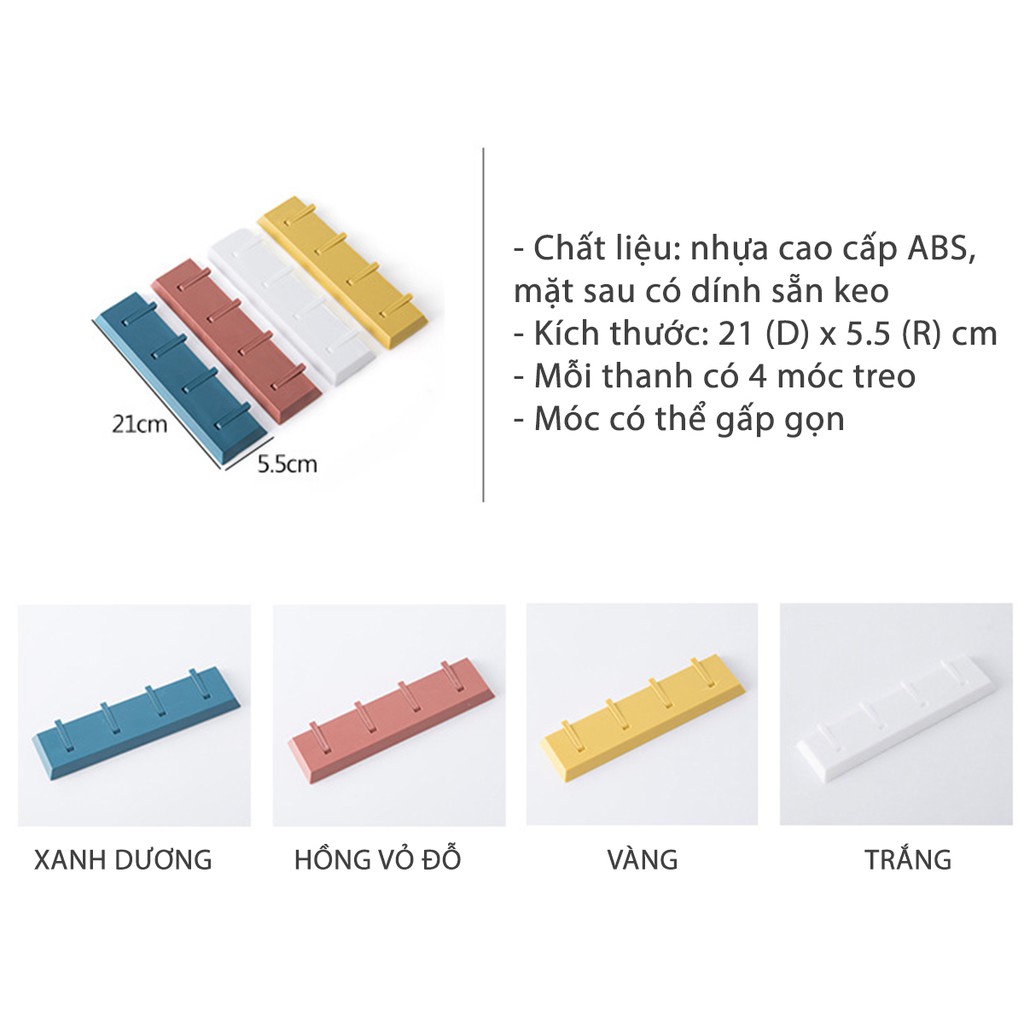 Nhà cửa & Đời sống > Sắp xếp nhà cửa > Móc treo || Thanh ngang 4 móc treo dán tường đa năng, màu sắc hiện đại treo đồ dùng trong nhà tắm - CMPK88Còn hàng