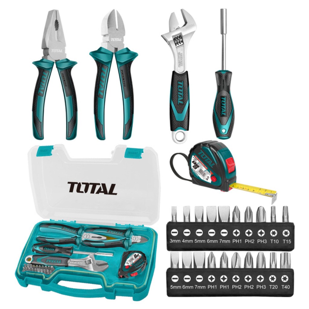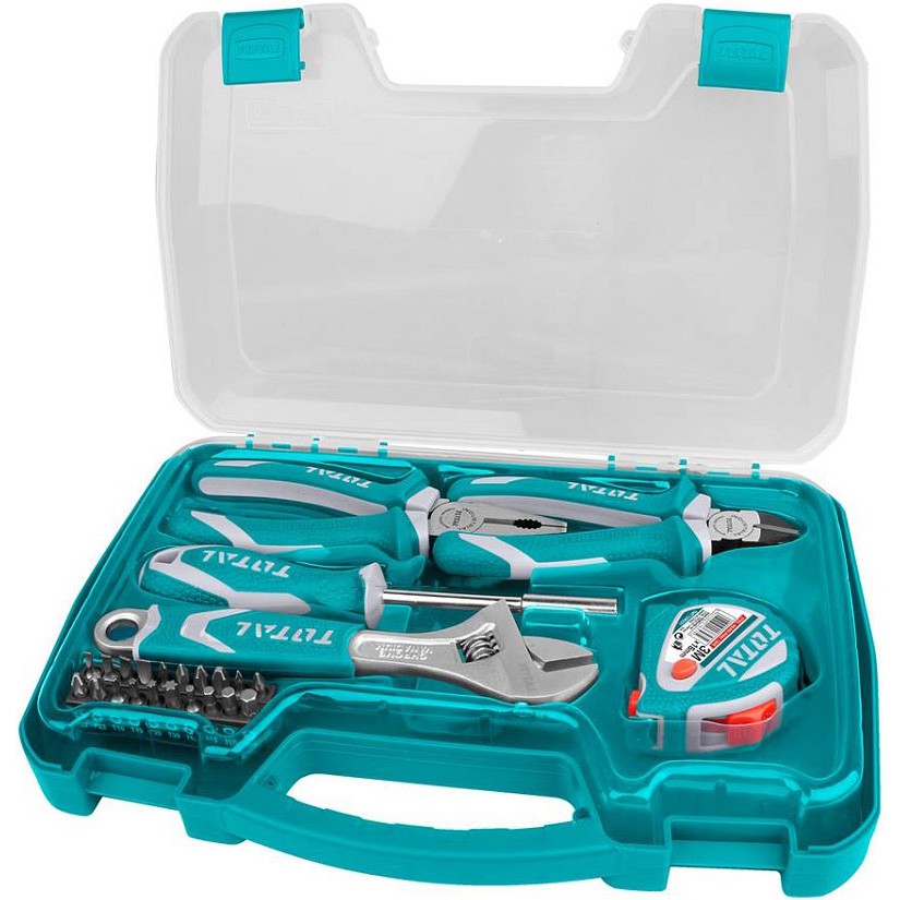 Bộ đồ nghề 25 chi tiết Total THKTHP90256Total Tools là thương hiệu mới được nhập khẩu vào thị trường Việt Nam, hứa hẹn sẽ mang đến nhiều trải nghiệm mới cho giới xây dựng và cơ khí. Total là thương hiệu nổi tiếng thế giới cung cấp dụng cụ dân dụng, dụng cụ cầm tay và các máy móc dùng điện, thiết bị an toàn cho gia đình và nhiều công trường xây dựng. Nhãn hiệu Total Tools có nguồn gốc ở Đức và được sản xuất tại Trung Quốc theo các tiêu chuẩn chất lượng của Mỹ, Châu Âu.