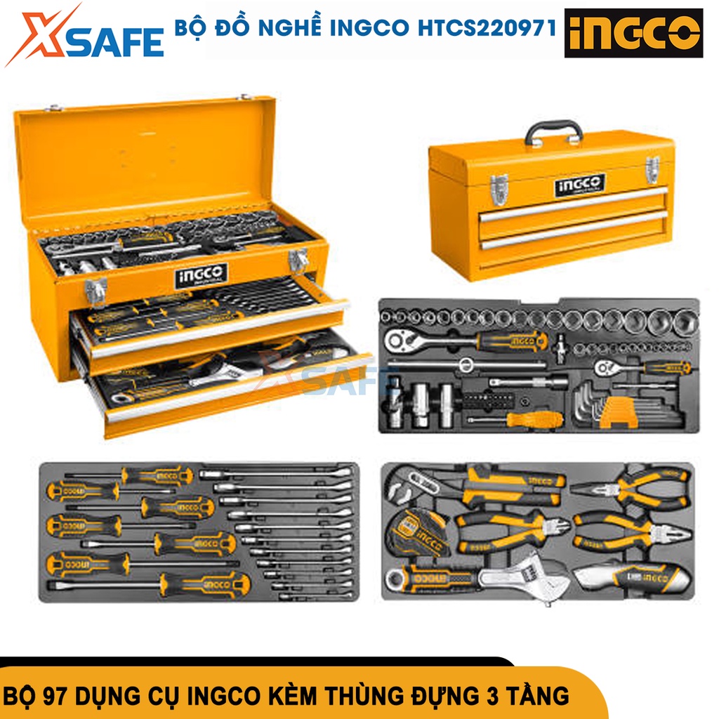 Bộ đồ nghề 97 chi tiết INGCO HTCS220971Được nhập khẩu và phân phối chính hãng bởi Bảo hộ Xsafe