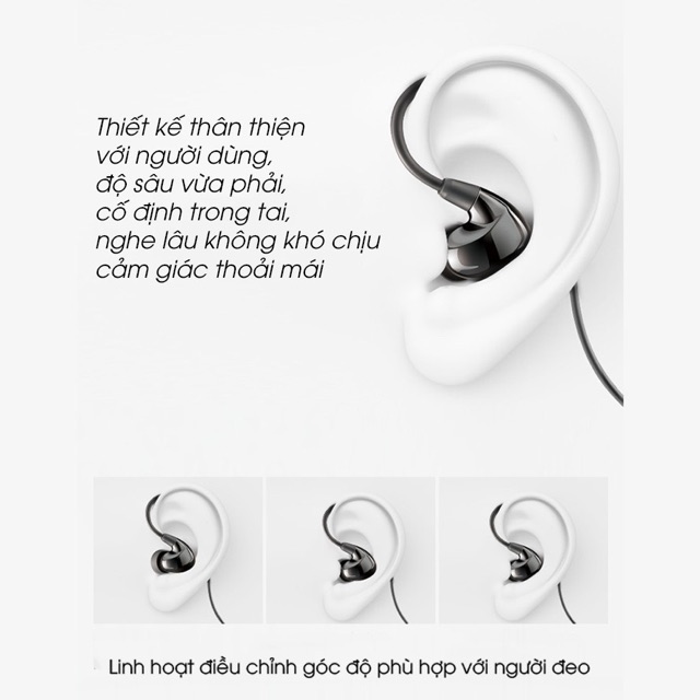 - Thiết kế Ergonomic, đeo vòng tai, thoải mái và ổn định.