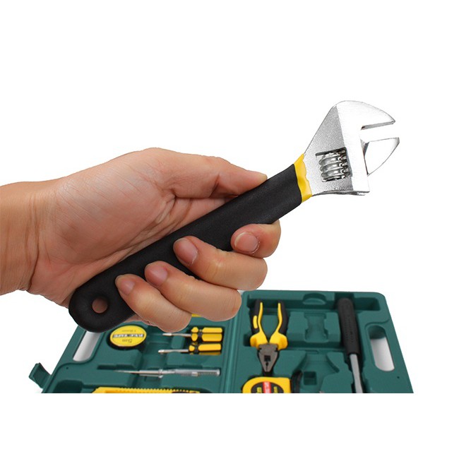 - Bộ sản phẩm gồm 12 món ( cả hộp đựng ): cờ lê, kềm, búa, tua vít, keo, thước... và 1 hộp đựng, công cụ hỗ trợ hiệu quả cho công việc sửa chữa các vật dụng điện trong nhà