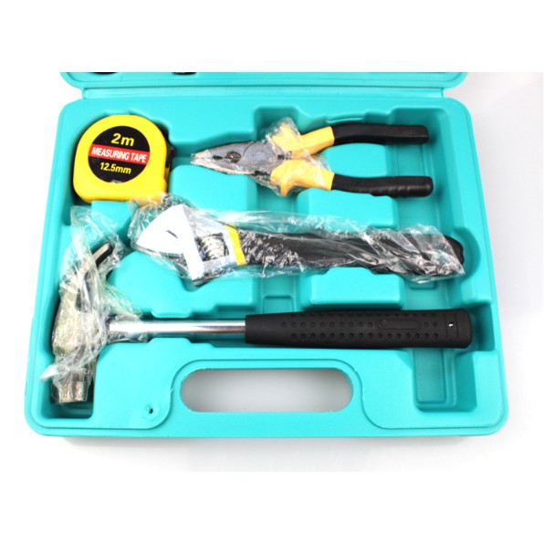 - Bộ sản phẩm gồm 12 món ( cả hộp đựng ): cờ lê, kềm, búa, tua vít, keo, thước... và 1 hộp đựng, công cụ hỗ trợ hiệu quả cho công việc sửa chữa các vật dụng điện trong nhà