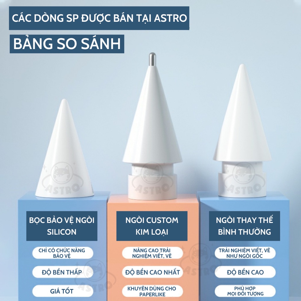 Ngòi custom cao cấp bản kim loại dành cho Apple Pencil 1/2 đã có mặt tại Astro shop, ngòi có các ưu điểm nổi bật:+ Siêu bền: 1 ngòi custom có độ bền tương đương 30 ngòi gốc.