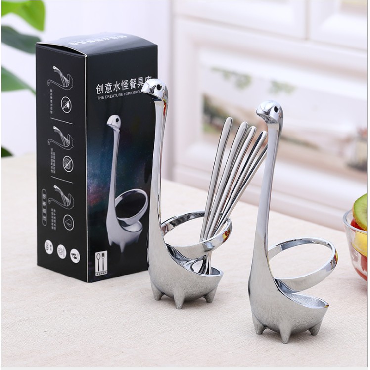 -COMBO 1 đế đựng hình chú ngỗng cưc đẹp và 3 muỗng(thìa) 3 nĩa ( dĩa)-SẢN PHẦM SANG TRỌNG,ĐỘC ĐÁO