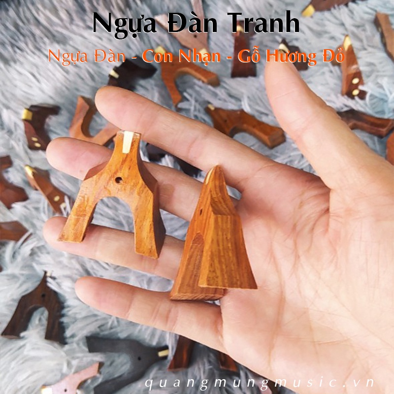 - Ngựa đàn guzheng, chất gỗ: gỗ Hương đỏ, Gỗ Mun đen, đầu xương, chấm tròn xương chuyên để làm đàn