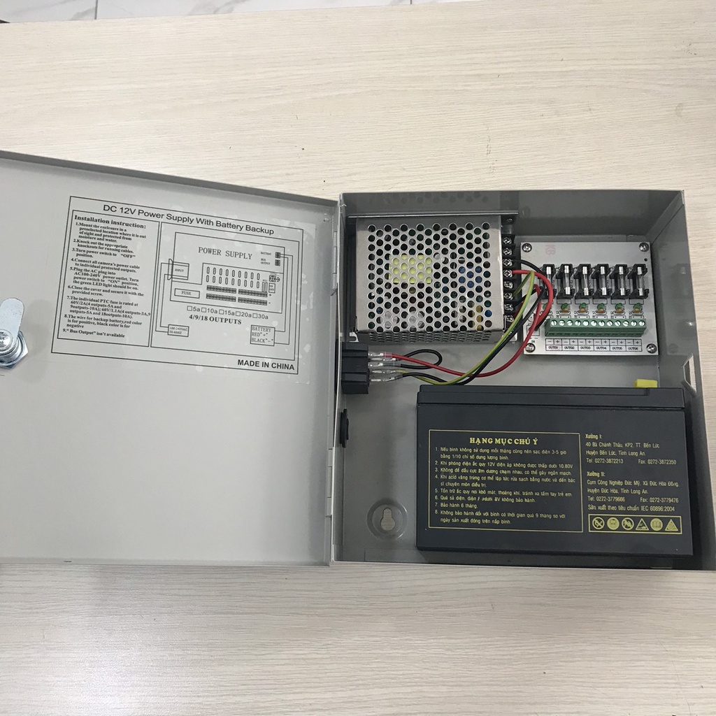 - Số lượng cổng ra (Output Channels): 04 (Cầu chì thủy tinh 1.5A)