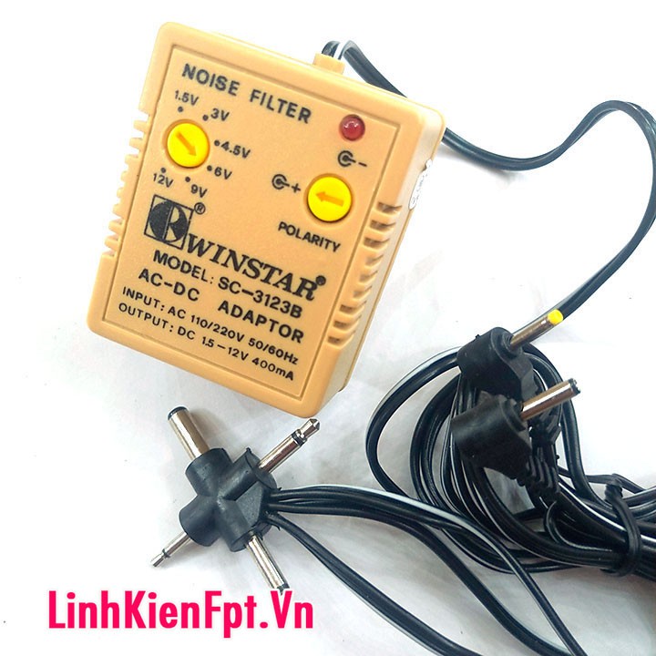 + Điện áp ra 6 đầu : 3V - 4.5V - 6V - 7.5V - 9V - 12V DC