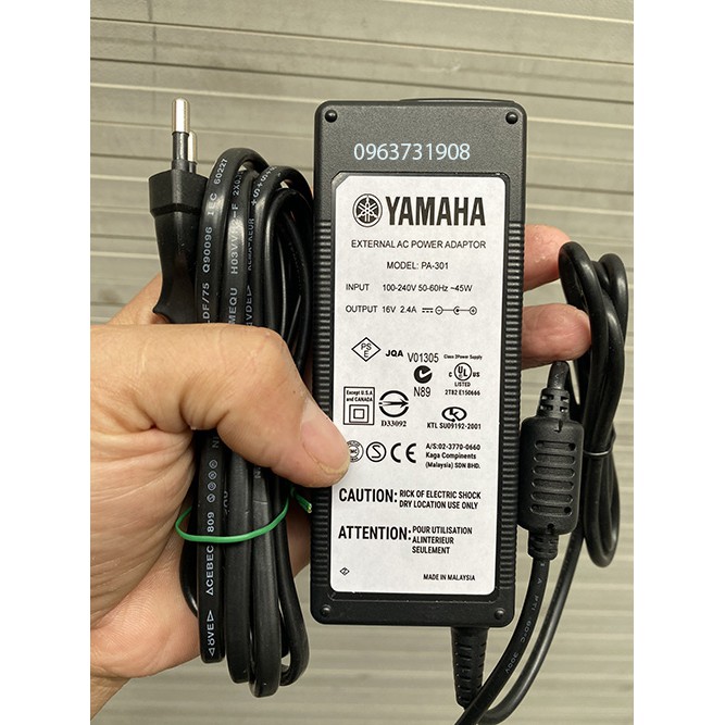Thông số kỹ thuật trên nguồn cho đàn yamaha Model PA-301 16V 2.4A chính hãng