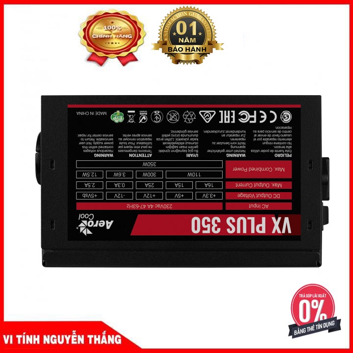 NGUỒN MÁY TÍNH AEROCOOL VX PLUS 350 230V N-PFC 350W ( MÀU ĐEN) NEW