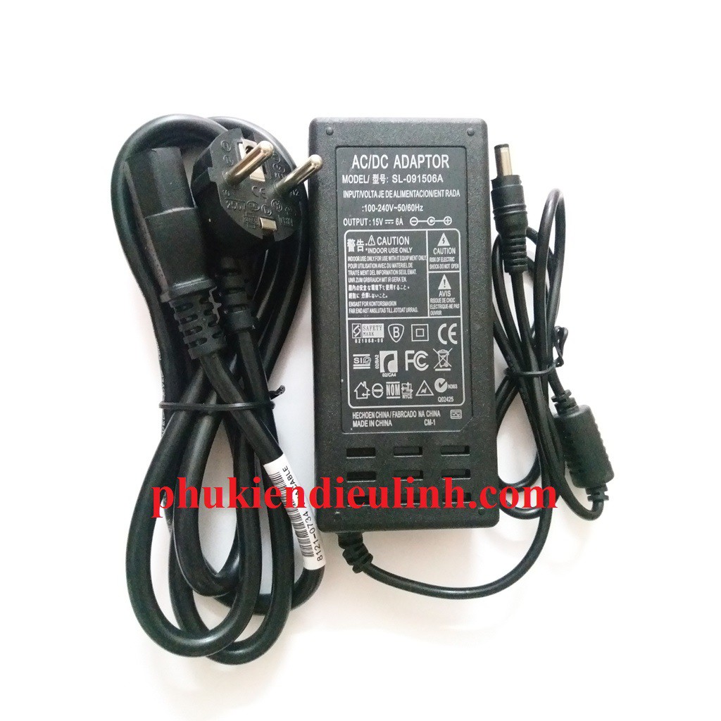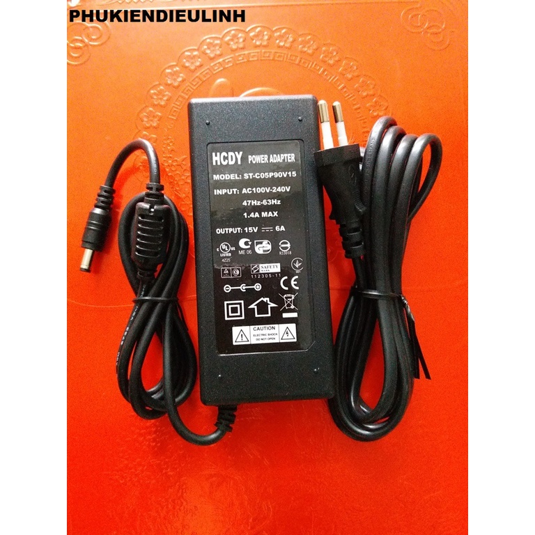 Điện áp ra 15v 6A . Chân rắc ra 5.5mmx2.5mm.